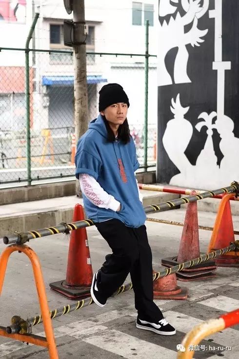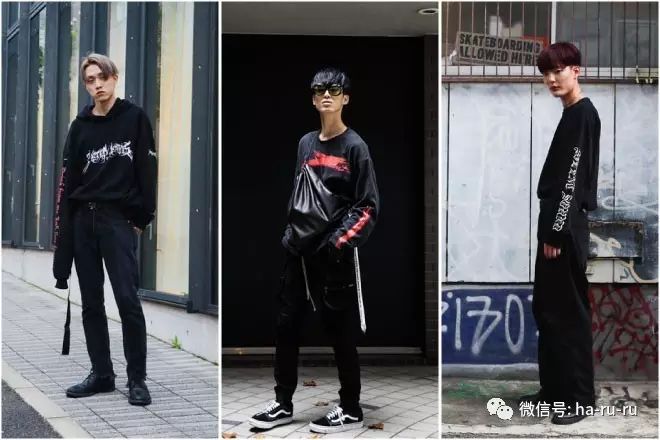 女子篇介绍了超长袖,其实男生间也一样流行。除此之外,男生还很喜欢那种在袖子上印了图案和印花的长袖上衣。一般都是品牌的名字或者logo,而字体方面男生们会偏爱欧洲中世纪风的“哥特体”。