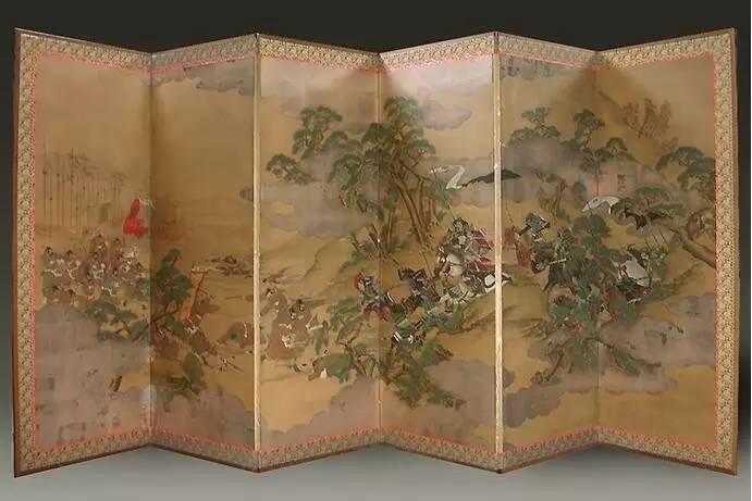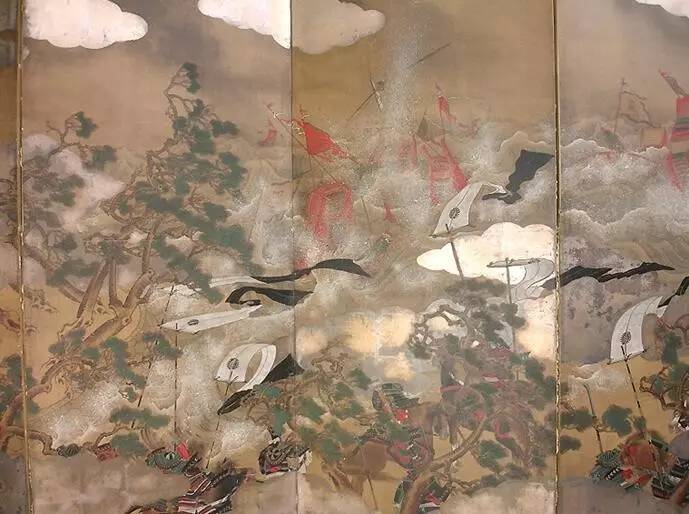▲遭遇飓风沉没的元军舰队,日本武士隔岸观望