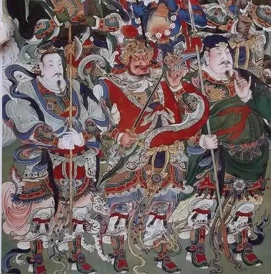 ▲日本佛经上记录的唐本天王,描绘了晚唐五代时期中国武人的形象,犹如战国时期的日本武士一样,铠甲头盔上装满兽头、鬼面、犄角的装饰物。这是中国历史上独一无二的的时期,武人的不可一世,被北宋开国皇帝赵匡胤制止,中国从此走向另一个极端---重文轻武,由此势必对武人的装束也要有严格的压制要求。这就是“武随文服”