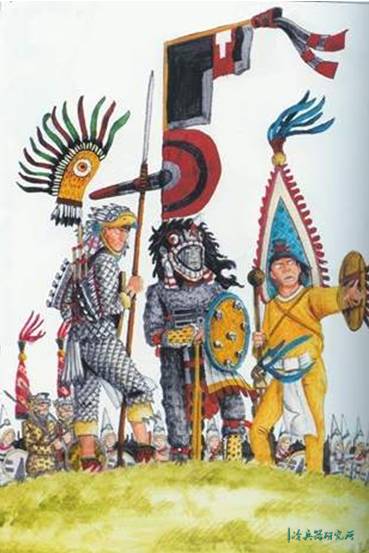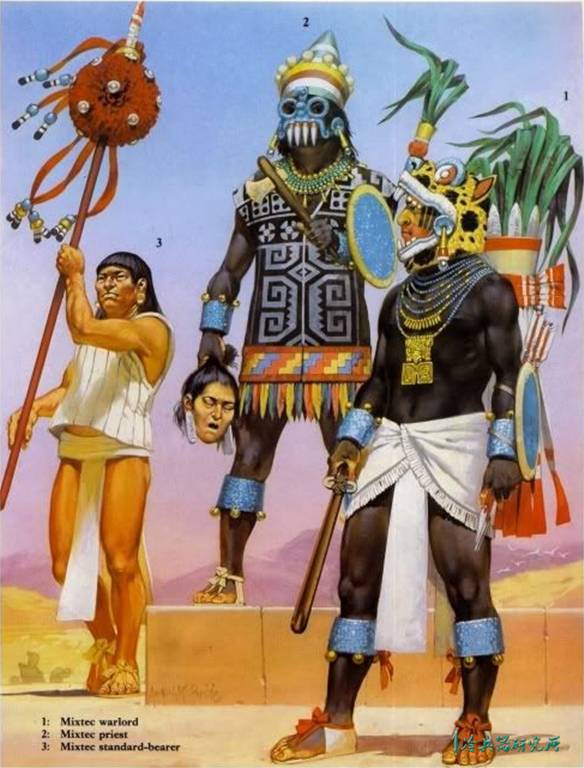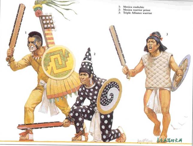 ▲这副图三个战士正好显示了阿兹特克武士的三个等级