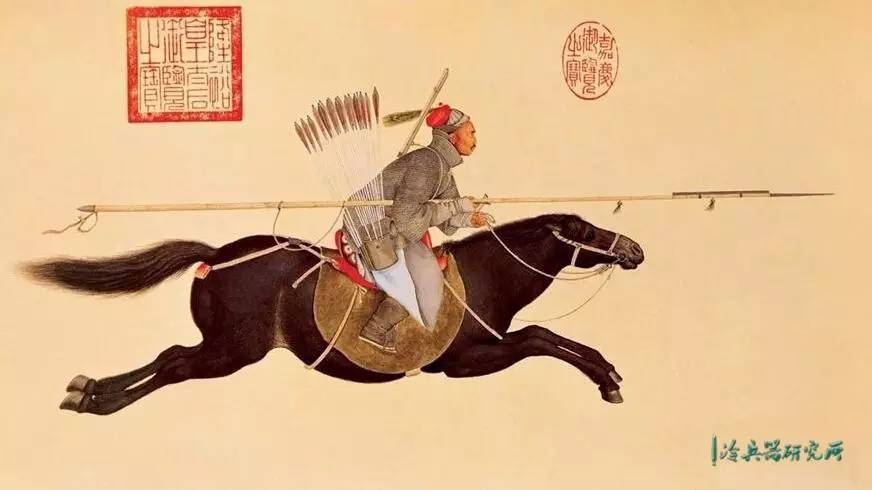 哨鹿图中骑士所用长枪较短,通体浑圆,做工精良,可能为禁卫部队所用。
