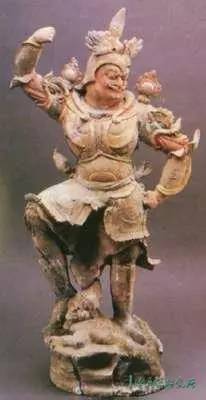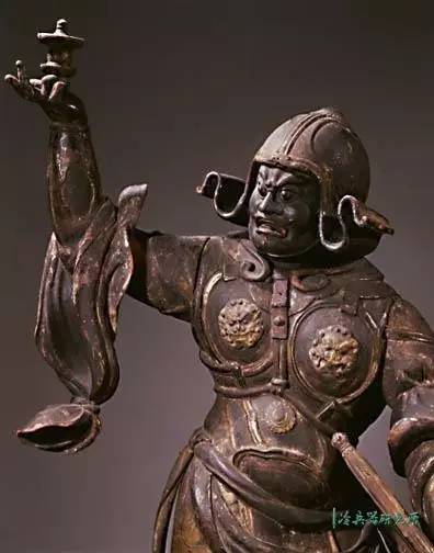 ▲奈良博物馆收藏之唐代多闻天王像,所佩戴的就是折返顿项盔