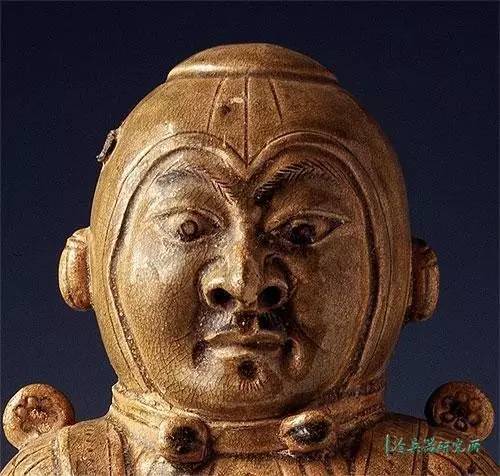 ▲头戴折返顿项盔的五代武士,注意折返形式对比唐代已经发生了变化