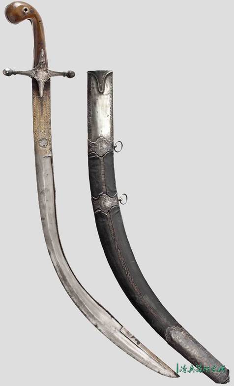 ▲奥斯曼武士常见的刀剑是辛塞尔宝刀,这是伊朗风格的军刀,刀身较细,弯曲度如月牙,装饰华丽,多见于佩刀