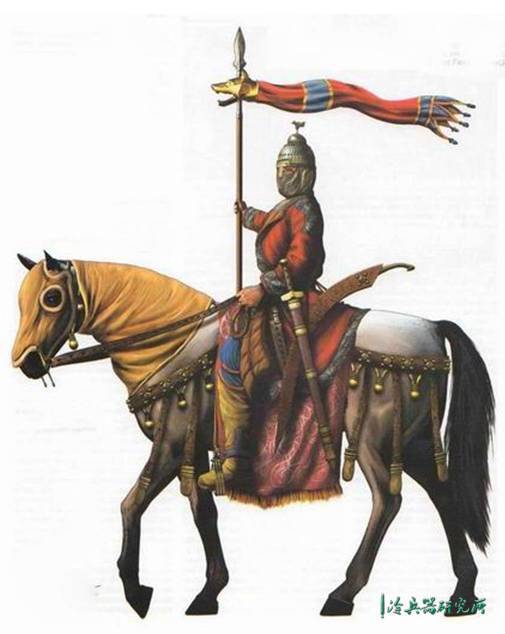 ▲手举斯基泰风格的狼头旗的突厥骑士