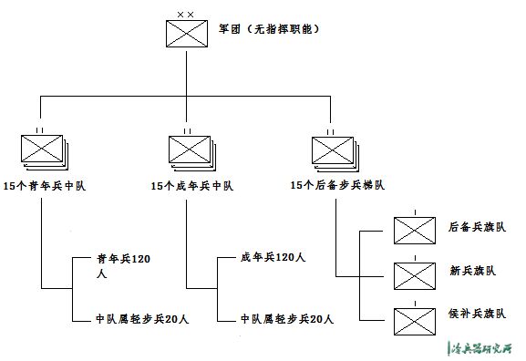 ▲李维时期军团的指挥结构:李维时期的罗马军队缺少中层指挥,第三线的具体组织情况仍相对模糊