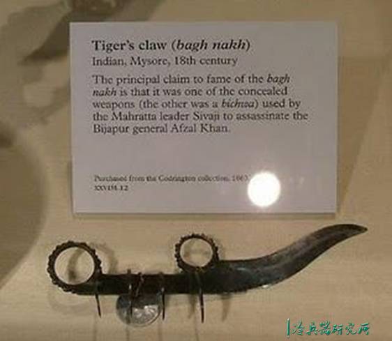 虽然印度的统治者和后来的英国殖民者都收缴过很多地方上的武器,但虎爪这种好做的武器根本不可能被完全处理掉,以至于从古至今。被这个小东西暗杀掉的家伙数以千计。直至今日这种传奇般的小兵器依然作为一种特色武器活跃在南亚次大陆各地。