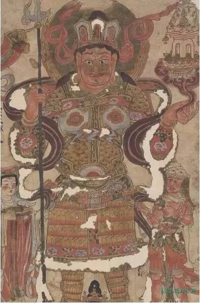 ▲唐朝敦煌帛画中的毗沙门天王,身着西域铠甲,肚脐下所横短弯刀,就是所谓吴钩,极有可能这种弯刀和天王的形象一样是外来文化,本来有外来名字,一般唐人不知如何称谓,故而就以他们习惯用在诗句中的吴钩称谓之