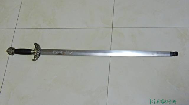 这是作者君在对抗中所使用的剑,睚眦吞口中国单手剑,明末清初的样式。因为是对抗用剑,没有开锋,也不需要硬度有多高锋利度有多好,所以刃材为45#钢。该剑为了保证安全,剑尖套了个钢卡子,并贴上数层牛皮作为缓冲,用胶带固定,除了不开锋,与实战剑没有什么区别。这样可以最大程度模拟实战。因为剑走轻灵、刀行厚重,若是包的太厚的缓冲,挥舞时的风阻对出剑速度会有影响。