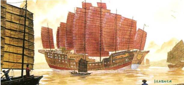 明朝一统华夏后又经历了靖难之役的波折,等到明成祖朱棣继位,为了争取海外地区对政权更替的了解和归附,提高威望,显示中国富强,也为了加强与海外各国经济文化友好联系,派郑和出使西洋。明朝水师又以自身惊人的规模和战斗力,震动了世界。当时明朝的造船厂遍布于全国,以江苏、福建、湖广、浙江等地最发达。郑和下西洋时的主力船只--宝船,就在江苏太仓和南京两地建造。