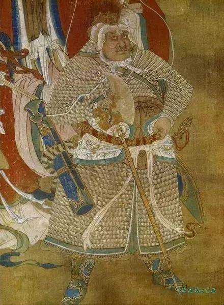 ▲头戴凤翅盔,手持金瓜的明代大汉将军