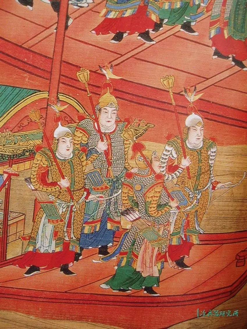 ▲出警入跸图中头戴明铁盔的锦衣卫大汉将军