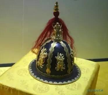第二种;“钵胄”。早期蒙古骑兵中也大量使用了皮质头盔,盔体以四到五片皮革连接成尖顶深钵状。由此发展而来的胄形深刻影响了后来的明清两朝头盔,被考古学界成为“蒙古钵胄”。这种胄有皮有铁,前额带眉庇,顶饰被后世戏称为“避雷针”的樱枪,此后的明清两代也大量装备这种形制的头盔,清八旗头盔更是完全以这种“蒙古钵胄“样式为主。