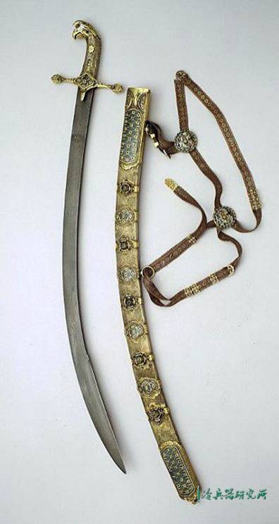 作为直辖军重要武器的马刀,与大多数莫斯科骑兵使用的马刀一样,都是受到了奥斯曼等穆斯林国家的影响,其刀身较为厚重,尤其是刀尖部位,与奥斯曼人使用的马刀都有类似的加宽处理。这样马刀在劈砍过程中,其造成的杀伤力效果也会更大。莫斯科马刀刀柄后部与很多中东刀剑一样是弯曲状,这种造型可以防止在劈砍时有时会造成的武器脱手问题。不过有趣的是,很多贵族们所使用的莫斯科马刀,都喜欢将后部的弯曲做成动物头部,尤其是熊、鹰以及狗和狼,都是较为常见的造型。因此也不排除直辖军们所谓“携带狗头”,是否是刀柄上的狗头最后误传。