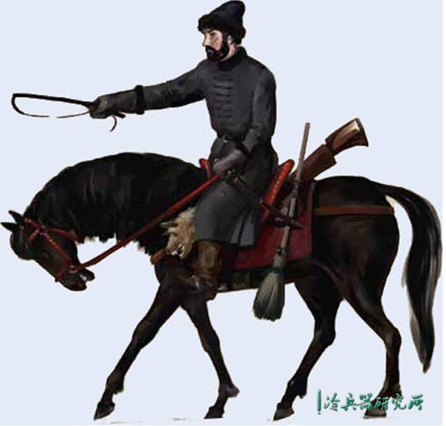 不过如果将16世纪刚刚诞生的龙骑兵与直辖军作为比较,其实还是有许多的不同。首先就在于驾驭马的工具上,西欧的龙骑兵主要使用的是在欧洲流行的马刺来驾驭马匹,而莫斯科则是使用具有亚洲风格的马鞭。对于早期的龙骑兵来说,马刺可以解放双手,让骑手在骑马冲锋的同时,还可以进行装弹和瞄准。而这对于使用马鞭的直辖军来说,就会显的有些麻烦,毕竟他们需要一只手一边使用马鞭,然后一边完成装弹和瞄准。因此后者不大可能是如同龙骑兵那样一边进行冲锋一边射击,更可能的作战方式是立马射击,或者是下马作为骑马步兵来完成火绳枪射击。