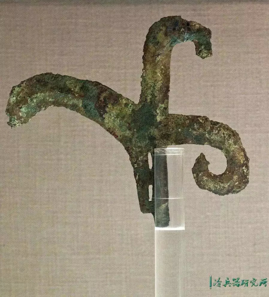 实用的戟为了避免脱落,会铸出阑和穿孔用于捆绑绳索,该戟仅有内的下缘铸有阑,穿孔也较少,戟刺上一个穿孔都没有,这种结构决定了它装完柄后,只要稍有碰撞,戟头便会掉下来,这样不结实的东西,如何能够用于作战?