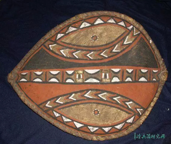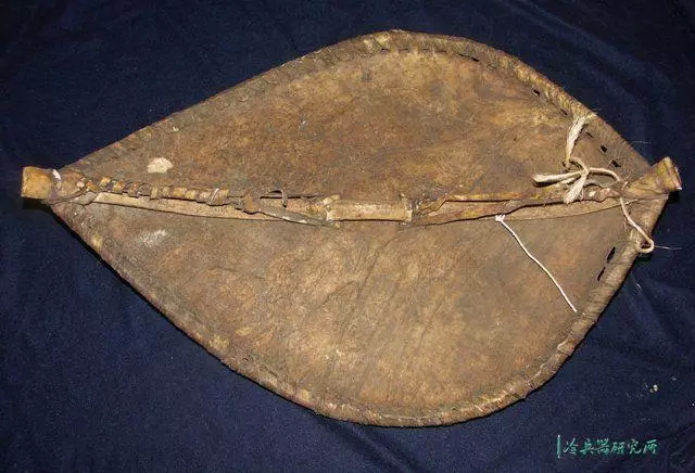属于精致的博物馆展品,由木头和兽皮制成。它是由收藏者在第一次世界大战结束后从非洲带回来上的。当时它是为实际作战而做的,而不是像现在为旅游贸易充当纪念品。其颜色鲜亮,保存良好,长度24英寸,宽17.5英寸。