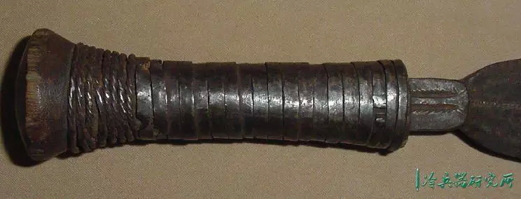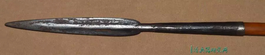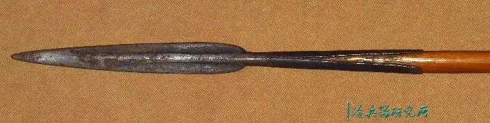 粗糙的竹轴每节长约7.5英寸,矛头有脊,锥形开口,底部有粗厚的铁箍,总长度在75英寸左右。