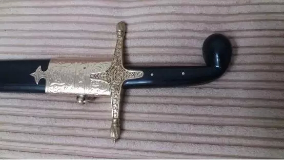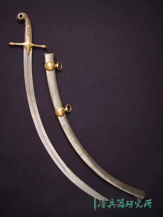 还有一种印度舍施儿,是印度塔瓦的刀柄加波斯舍施儿的刀身,我个人倾向于把这类归为塔瓦的分支,但是的确也有收藏家把这类弯刀归为舍施儿类,属于印度舍施儿。(见下图)