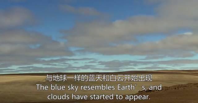 40年的积累,火星上大气层变厚,出现蓝天白云,赤道零上温度更加稳定,地表冰层融化形成海洋。