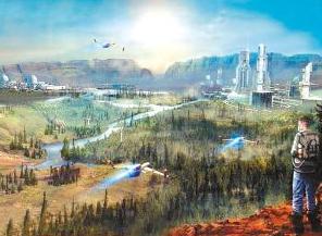 生物合成技术可以实现火星就地生产建设材料,火星会有更多生产工厂用以暖化火星,平均温度会升到零下35摄氏度。干冰气化,水融化汇聚成河流。