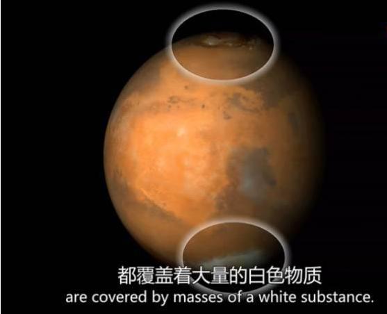 火星南北两极覆盖有大量干冰(固态二氧化碳),地表还蕴藏有大面积冰层(固态水)。如果能让这些干冰气化,冰层融化,就能在火星表面形成大气层,抵挡紫外线。