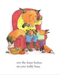 当然了,爸爸也是居家能手,还可以帮你的小熊缝上掉了的扣子。