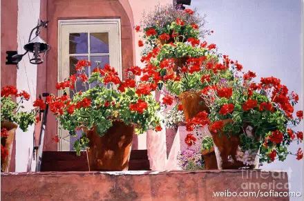 门廊前的一簇簇鲜红的花朵,胜过了天空中的那一轮骄阳。
