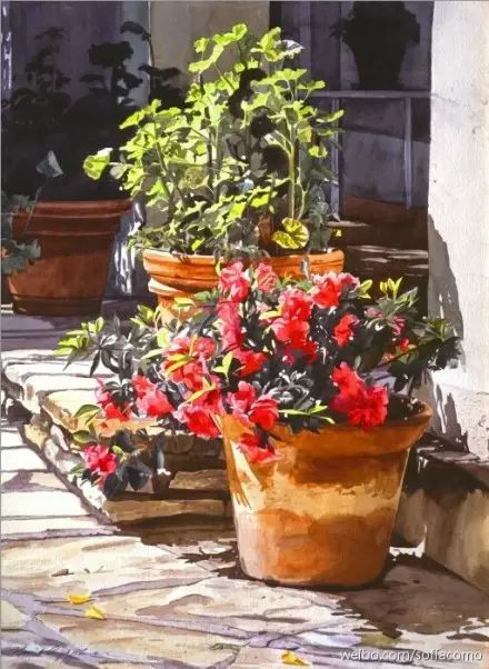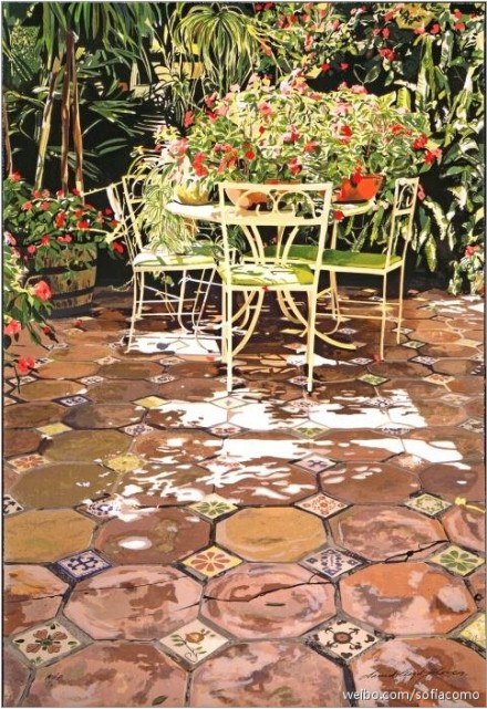 美国画家DAVIDLLYOD GOLVER画画的题材、风格和媒介都经常变化,我喜欢他这些花园小景,画面里满是明朗干净的阳光和宁静而欢乐的气氛。相比之下,这一组里我个人偏爱前面的水彩更甚于后面的油画,觉得水彩更轻盈灵动,虽然第七幅的油画也极为潇洒飘逸了!
