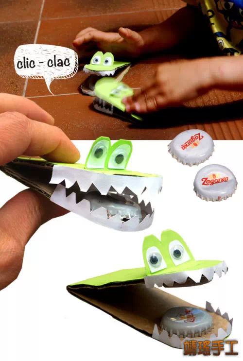 聪明的你赶快动起手来和小编一起用瓶盖DIY小玩具大鳄鱼吧!