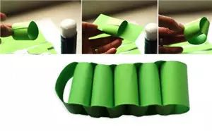 如上图套在第一环,前面部分粘在一起并剪成尖尖的尾巴。