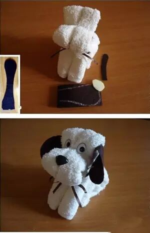今天教大家用毛巾制作一只乖巧可爱的小狗。