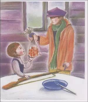 第二天,我想再到狐狸家去,请它给染染手指头。于是,作为谢礼,我做了好多夹肉面包,到杉树林里去了。