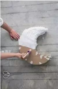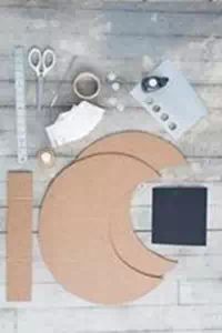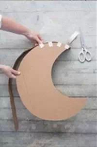 首先您需要将硬纸板裁切出月亮的形状然后拼合起来,主要是4个面,您看图就会明白的;