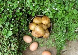 烤鸡蛋,撒上盐的热土豆
