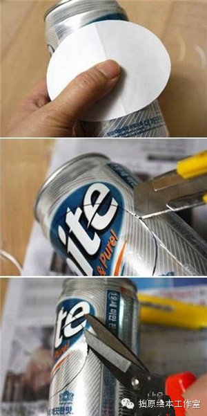 第三步:用剪刀剪出一个个小锯齿,然后把它们折回去,防止易拉罐划伤手。