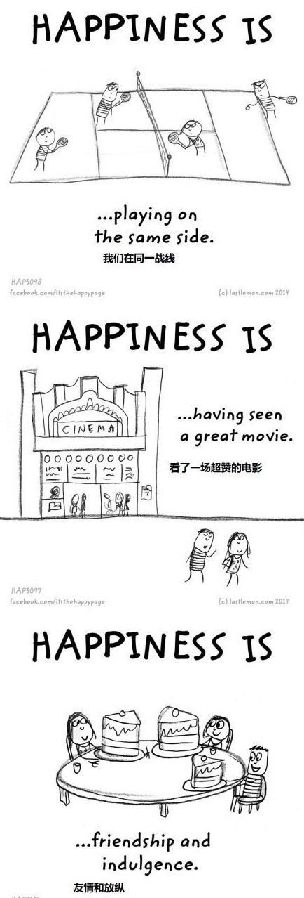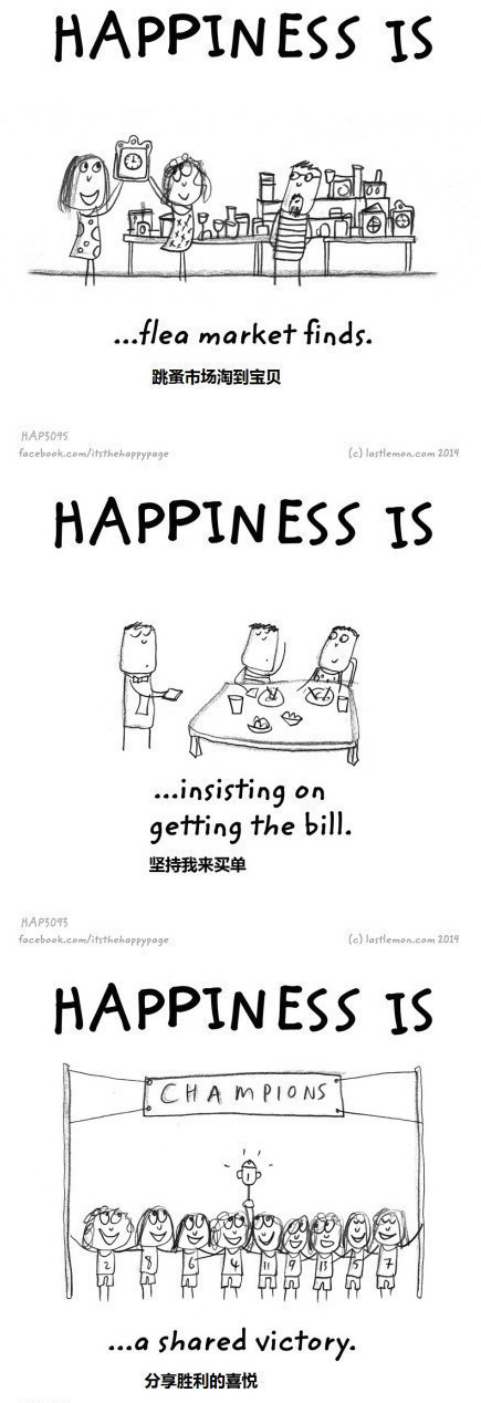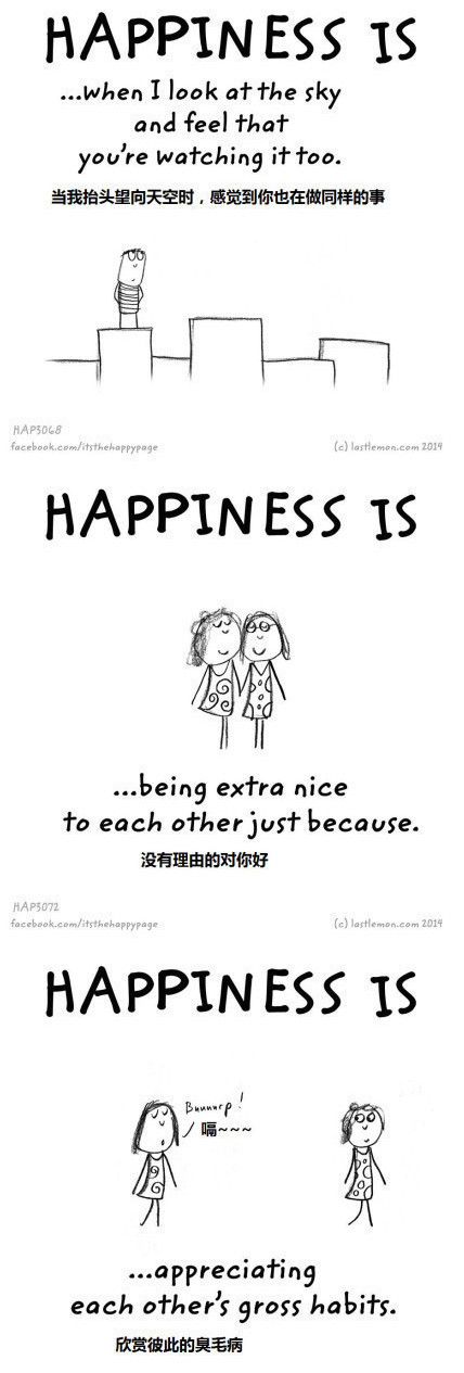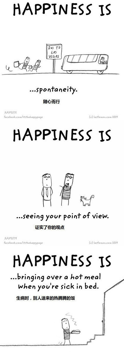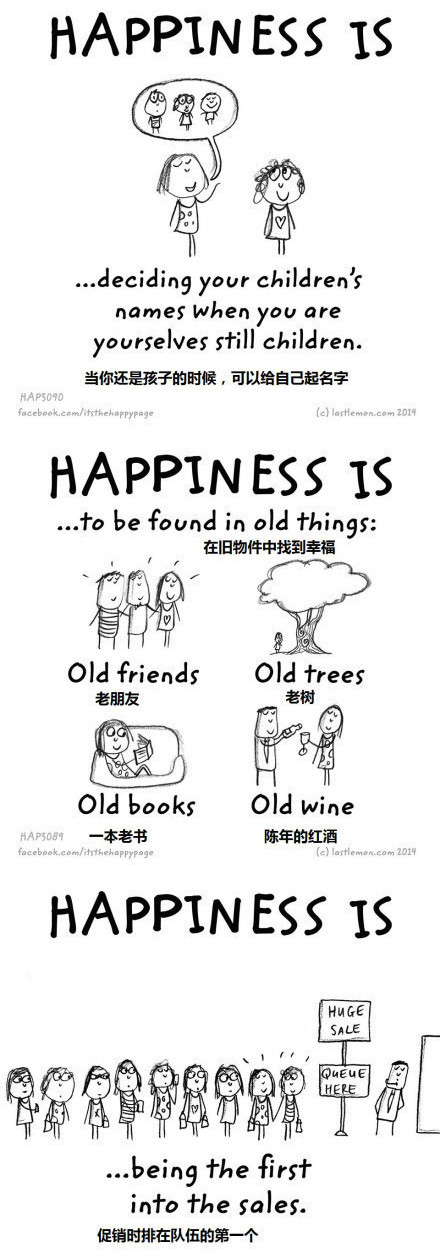 幸福是什么?facebook一网友用自己的手绘画出27件让人觉得幸福的事情。太棒了~~