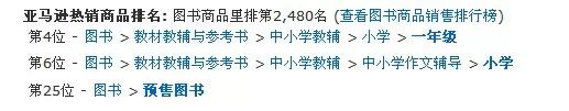 截止19日晚,在一年级教辅、小学作文类图书销量榜中分别位列第四、第六。