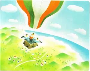 他们坐在热气球上寻觅派发礼物的好孩子
