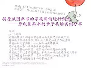 讲座预告 ▏Carol老师:将原版图画书的家庭阅读进行到底