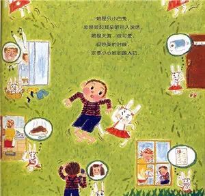 这只小兔子耳朵长长,最爱听妈妈教训哥哥(右下角):这只小兔子的耳朵依然尖尖,偷听着哥哥打电话,想着是不是又在和隔壁的长头发姐姐聊天啊…