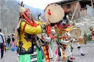 羊皮鼓舞在羌语中称为“莫恩纳莎”、“莫尔达沙”或“布滋拉”,是“释比”在法事活动中跳的一种祭祀舞蹈,又称“跳经”,是羌族祭祀活动中主要的舞蹈形式,具有鲜明的羌族文化特色。羌族羊皮鼓舞起源于传说中的《木姐珠与斗安珠》故事,传说是天神阿巴木纳带了很多在各种祭祀场所用的经书,由于路途劳累,休息时他睡着了,醒来时,所有的经书都被一只山羊吃进了肚里,正着急时,树上的金丝猴对他说:“羊子吃掉了你的经书,你快杀掉山羊,用山羊皮制成鼓,做法事的时候,敲起羊皮鼓,经文就会脱口而出。”此法果然灵验,阿巴木纳为感激金丝猴,在做法事的时候,就佩戴金丝猴皮帽。从此以后,释比们敬拜猴头师祖或做法事时就大跳“羊皮鼓舞”。