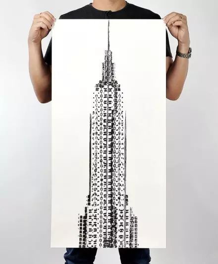 Yang会用自行车轮胎画画,他每次大约用七八种不同型号的轮胎就可以画出帝国大厦,埃菲尔铁塔等知名建筑,也是牛到没朋友!