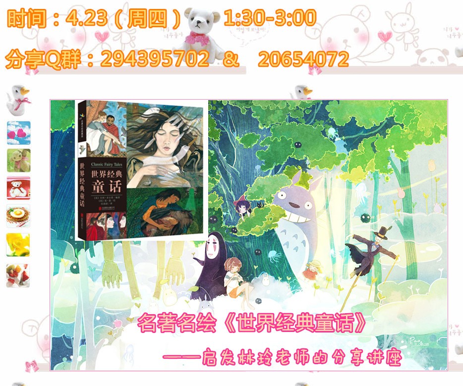 https://mmbiz.qlogo.cn/mmbiz/Ych5hUC5TlvgtXdDgeF2j6zAAPkCMCHMgLF254FbrMQicDPobo7ybiaWUMleLDMibTPVraFhA5ibcJGtLuq30IicMzA/0?wxfmt=jpeg| 拙•讲座" TITLE="就在明日:名著名绘《世界经典童话》——启发林玲老师的分享讲座 | 拙•讲座" />