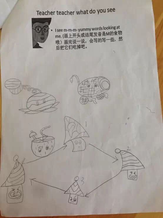 让孩子满世界找,找不到就画,反正英语学了,也玩了
