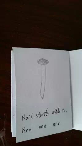 家长念一些词 如 melon , map , ham , mermaid, 让孩子捉出 M的发音在 beginning, middle