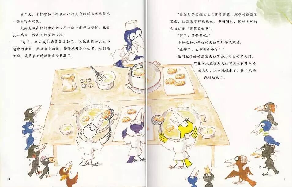 通过吃的来讲故事,对孩子很有吸引。相信每个孩子对书中那些描绘各种美食的画一定是看了又看,乐此不疲。