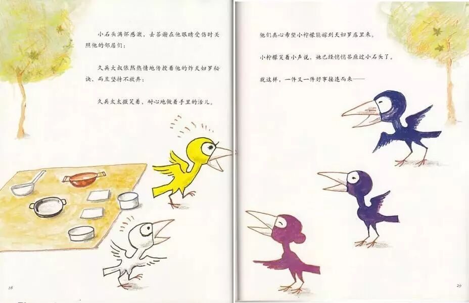 讲到这里,我想乌鸦天妇罗店能够复兴的秘诀也就不难看出了:好朋友,好人缘,好产品,好用心。人生难免经历各种意外,困难和挫折,但是只要像乌鸦小镇上的这些乌鸦们一样,相亲相爱,互相帮助,用心做事,努力工作,就一定能够克服困难,迎来希望。这,或许就是作者想传递给我们的信念吧。