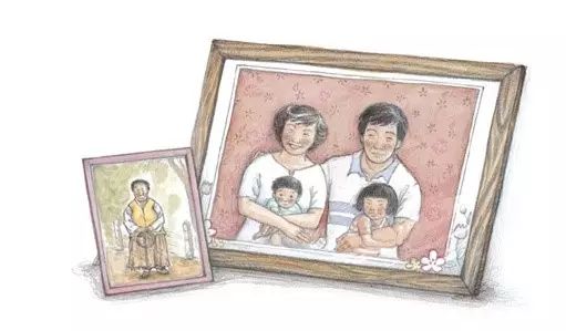 2、爸爸在最后一幅全家福里是微笑着的,在这里他不只是家里的顶梁柱,他更是一个儿子,他有妈妈了。