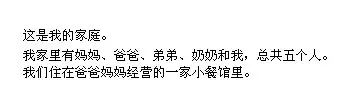 啊,还有,我还有一个奶奶。不过,她自己一个人住在遥远的乡下。我爸爸从很小的时候就没有和奶奶住在一起了。